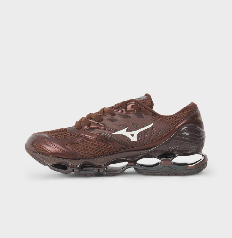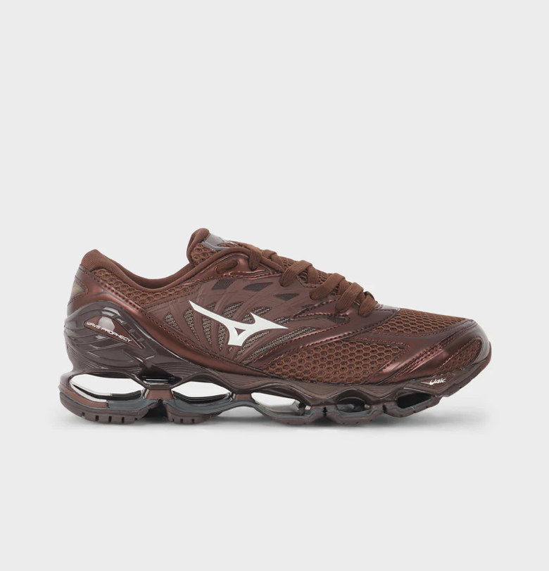 Launched in 2012, the Prophecy did not go unnoticed, and it’s still creating a stir today. This Y2K inspired iteration, on which the silver overlay compliments rich 3D air mesh, is not an exception. This is without a doubt one of the most futuristic-looking shoes ever created, and it highlights Mizuno’s gift in structural technology. The signature infinity wave was engineered to make it lighter and more flexible, while maintaining stability and grip thanks to the outsole. This style is the epitome of Mizuno’s minimalistic and refined aesthetic, and it stands for quality and care in every aspect of sourcing and production. It stands for every little detail having a purpose too. Bringing the game-changing technologies of Wave Prophecy silhouette from running into the Sportstyle range provides a unique option for those seeking maximum performance in everyday use.